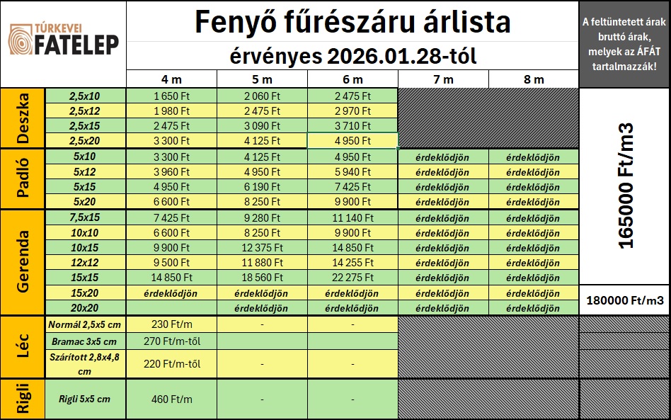 - Fenyő fűrészáru